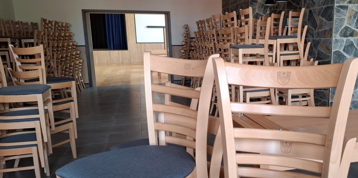 Celkově jsme realizovali gravuru přes 200 ks židlí, 45 ks stolů a 13 dalších interiérových prvků. To vše bylo zrealizováno během cca 8 hodin, takže nebylo třeba nijak ovlivňovat chod kulturního domu.